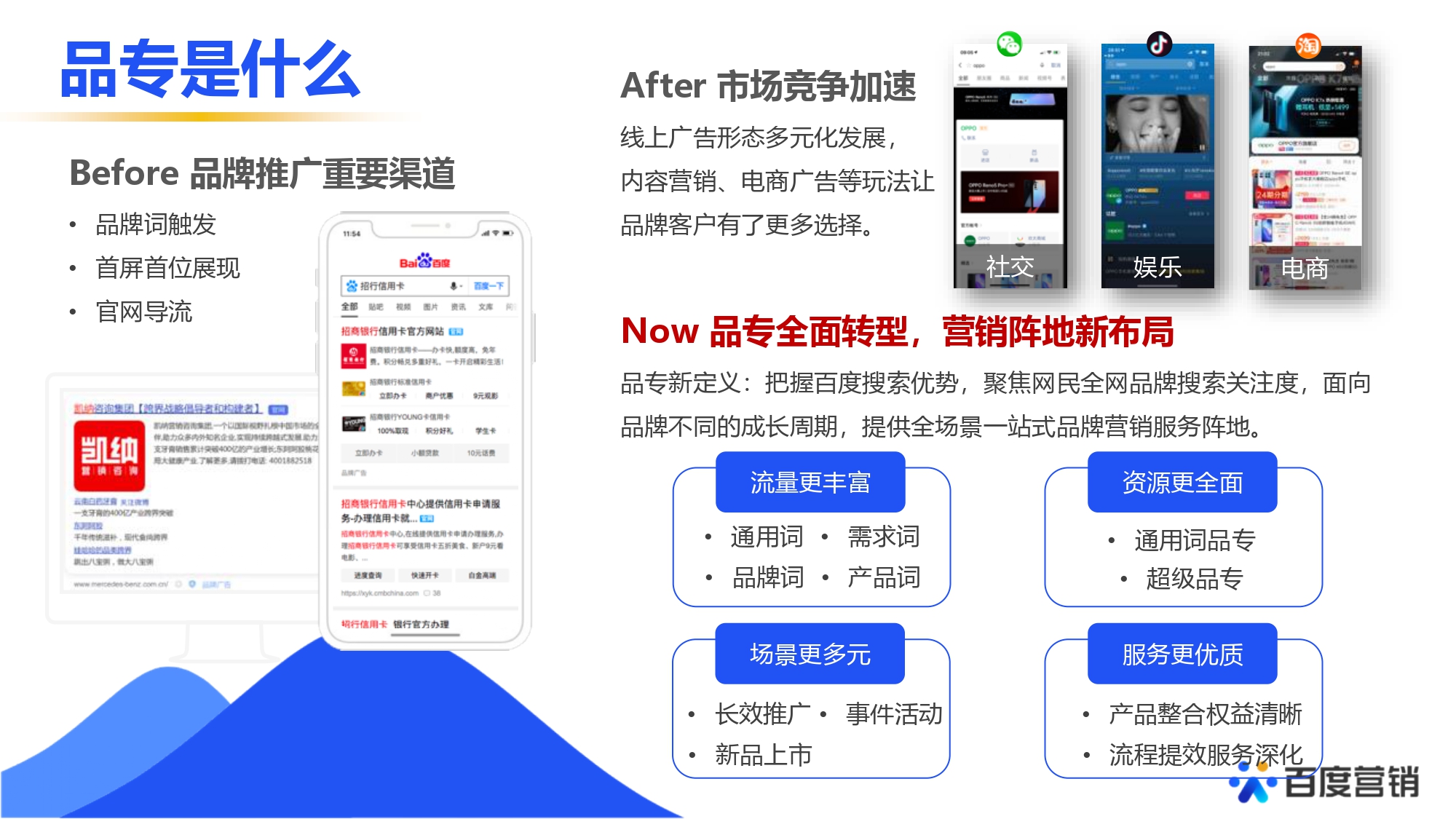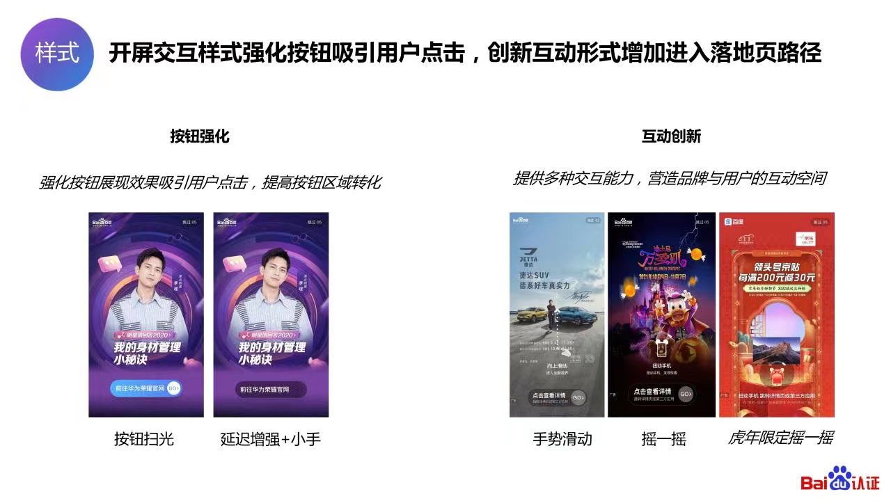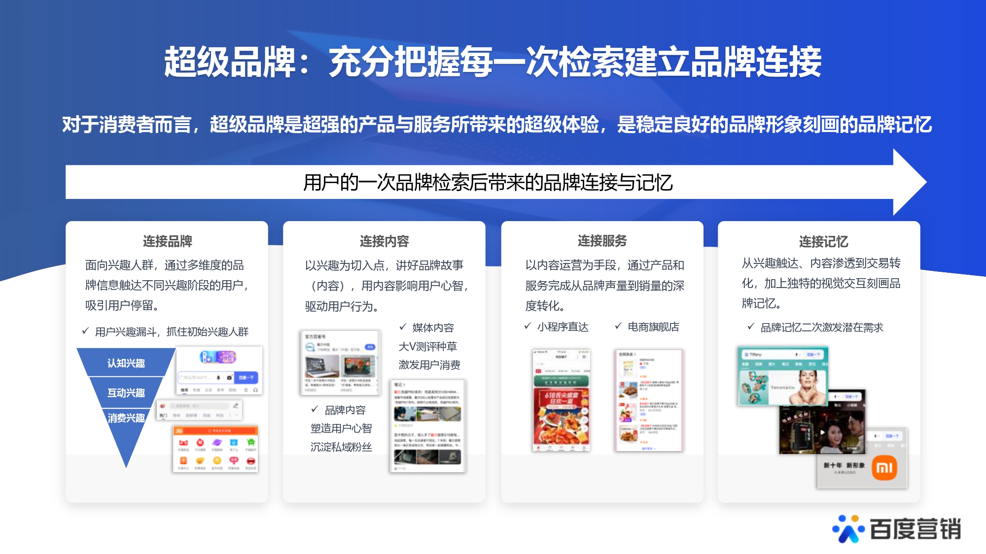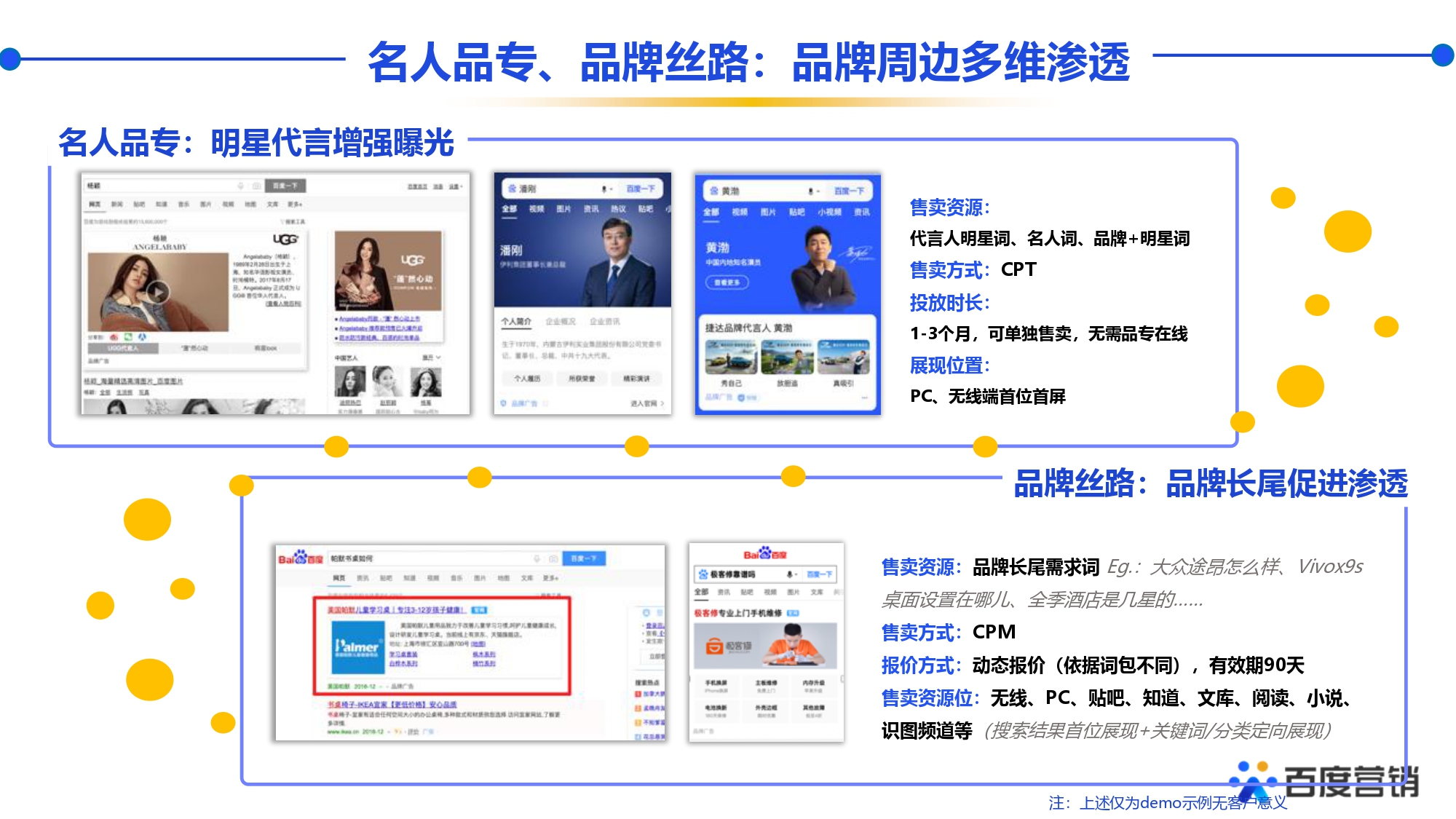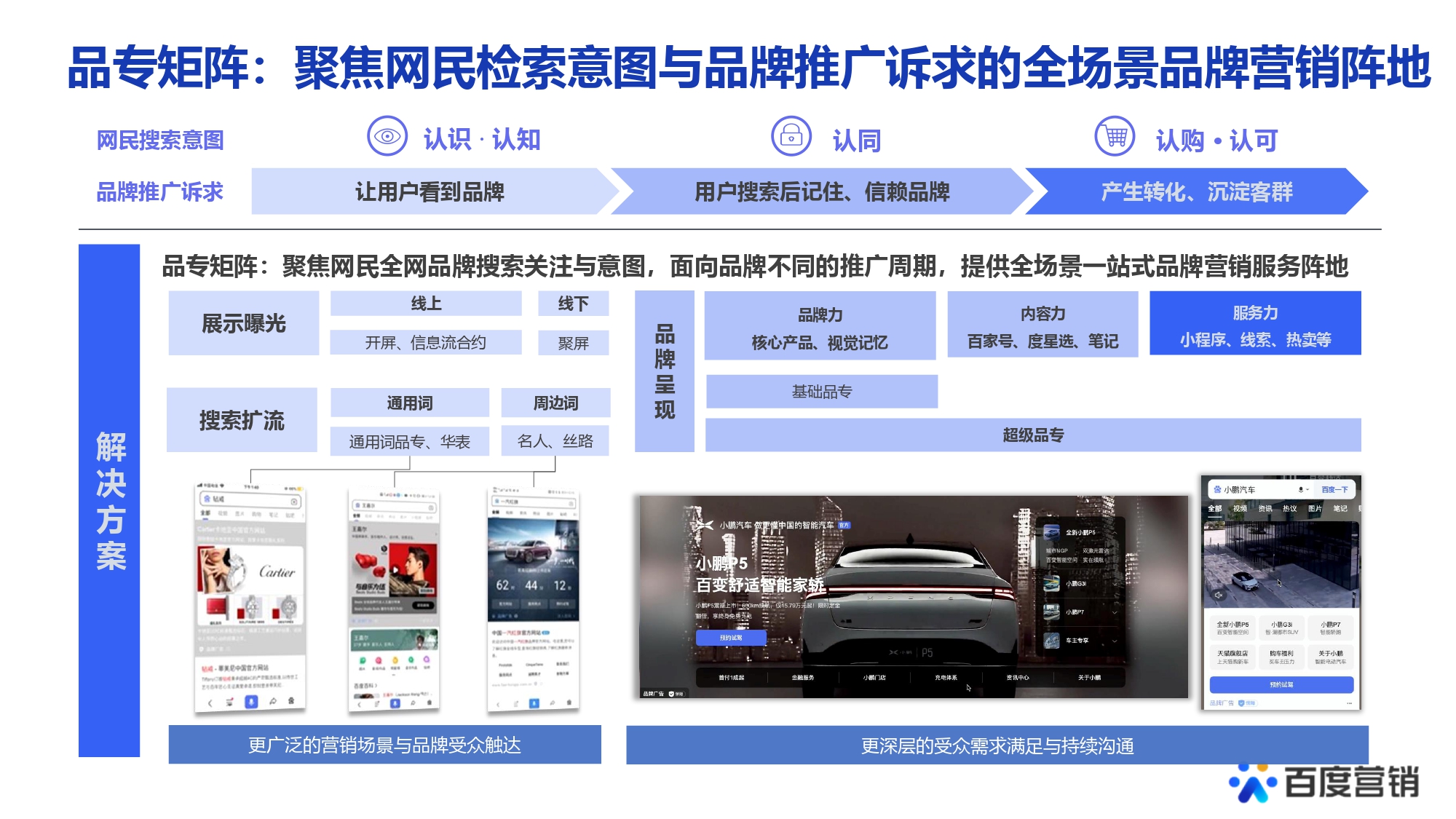 品牌推廣基于百度搜索引擎,通過品牌詞觸發(fā),提供全場(chǎng)景一站式品牌營(yíng)銷服務(wù)陣地,以創(chuàng)新的樣式和視覺交互吸引品牌認(rèn)知階段的搜索用戶,加深用戶對(duì)客戶品牌的第一印象,進(jìn)而引導(dǎo)用戶形成對(duì)品牌的好感和忠誠(chéng)度。